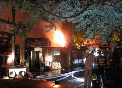 距火災(zāi)現(xiàn)場僅1街之隔,就有1座加油站,消防隊(duì)員緊急拉起封鎖線,全力圍堵火勢蔓延。受火損的磚頭和木造建筑為老式房屋,里面的住戶廚房多數(shù)使用桶裝瓦斯,外泄的瓦斯助長火勢,一發(fā)不可收拾。