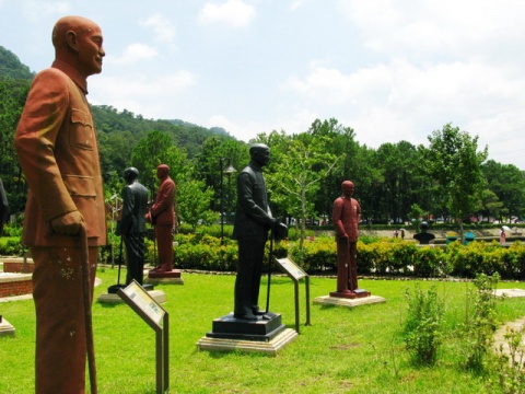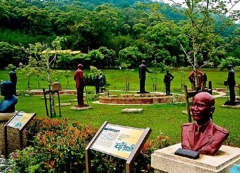 教授告訴我,這個雕像群落多達兩百余座蔣介石雕像,因上世紀90年代后期“去蔣化”運動,各地矗立的銅像紛紛拆除,面臨回爐煉銅的命運。慈湖所在的桃園縣當時正值“藍營”執(zhí)政,于是將各地拆除的銅像收來,選出其中藝術(shù)水準較高者,建成雕塑群。