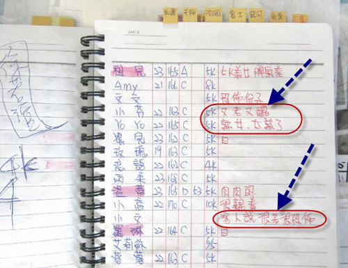 客人對(duì)應(yīng)召女的評(píng)語也五花八門,包括“長得像徐若瑄、楊丞琳”,還有“小姐”被寫有體臭、脾氣差、又老又丑等;其中一名23歲的專柜“小姐”被嫌太老,員警看了哭笑不得。
