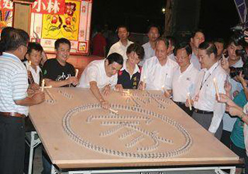 去年八八水災(zāi)重創(chuàng)高雄縣甲仙鄉(xiāng)小林村,400多位村民慘遭活埋或失蹤。馬英九和“行政院長”吳敦義,在8日晚間南下,在杉林鄉(xiāng)的小林村組合屋基地參加點(diǎn)燈祈福晚會(huì),并和小林村民共進(jìn)晚餐。