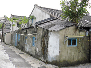 一位旁邊的住戶告訴記者,眼前的四四南村,就是由兵工廠的員工及眷戶們居住的區(qū)域,原地曾是日軍陸軍庫房。整體建筑為“魚骨狀”架構(gòu),依然保持著當(dāng)年的樣貌,窄窄的過道,低矮的屋頂,灰黑色的磚墻,狹小的居住面積。據(jù)統(tǒng)計(jì),四四南村原計(jì)劃在1999年隨眷村改建政策拆除,但在1991年3月,被臺(tái)北市政府列為“歷史建筑物”,并在1993年10月,改為信義區(qū)公民會(huì)館,將眷村內(nèi)的生活用博物館的方式展出,并提供市民租借為展覽活動(dòng)場(chǎng)地。原建物并未變動(dòng),連圍墻也都還保留著。