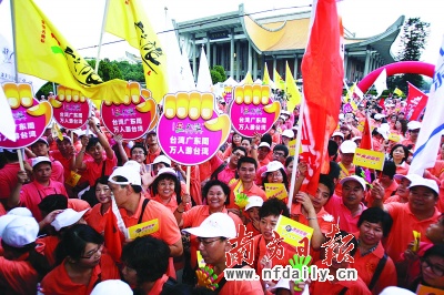 臺灣游的領(lǐng)隊(duì)在臺灣的日子比在家的日子還要多!拔覀冇蓄I(lǐng)隊(duì)一直記錄著每次去臺灣的日期和天數(shù),至今已接近80次,以平均每次5天算,兩年內(nèi)有400多天在臺灣!眲逭f,其實(shí),從側(cè)面上也可看到,廣東的臺灣團(tuán)是一團(tuán)接一團(tuán),連續(xù)不斷。