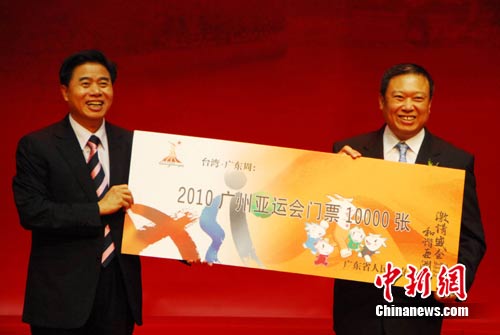 中新社臺(tái)北8月17日電 (記者 張傳熙)“臺(tái)灣•廣東周”開(kāi)幕式17日上午在臺(tái)北國(guó)際會(huì)議中心舉行。臺(tái)灣政要及工商界知名人士,包括吳伯雄、江丙坤、王志綱、郭山輝等出席開(kāi)幕儀式。廣東省省長(zhǎng)黃華華在儀式上向臺(tái)灣有關(guān)方面贈(zèng)送亞運(yùn)會(huì)門票。