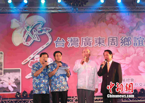 晚上,在新竹縣喜來(lái)登酒店大廳舉行的歡迎黃華華省長(zhǎng)一行到訪的“好客晚宴”上,黃華華與吳伯雄,以及新竹縣領(lǐng)導(dǎo)人邱鏡淳等一道登臺(tái)獻(xiàn)歌。