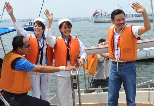 金溥聰與國民黨高雄市議員、里長參選人及大批支持者到場(chǎng)造勢(shì),展現(xiàn)大團(tuán)結(jié)的氣勢(shì)。此外,金溥聰、黃昭順母女還搭上“順”字號(hào)帆船出航繞港,象征“高雄啟航”。