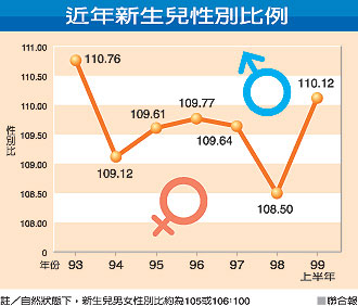 此外,除了高齡產(chǎn)婦產(chǎn)下男嬰機(jī)率較高,從“健康局”分析來看,第三胎起,男女嬰比也嚴(yán)重失衡,甚至達(dá)120多比100。李茂盛說,島內(nèi)每年透過人工生殖產(chǎn)下的嬰兒約2000多名,不可能因此造成性別比例失衡,“不孕的人通常只求生得出來,不見得會(huì)挑性別”。