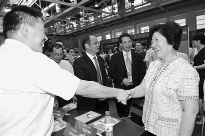 “書記、省長好!”在機(jī)械洽談區(qū),省委書記孫春蘭與省長黃小晶一出現(xiàn),正在洽談的臺商就不約而同地鼓起掌來。他們熱情地迎上前,七嘴八舌地介紹起自己帶來的招商項目。臺灣張鐵工廠股份有限公司董事長張清雄來自臺中,已在福建設(shè)廠。他對洽談會興趣濃厚!岸嗤顿Y,很好。這樣產(chǎn)業(yè)能夠群聚。”孫春蘭微笑著對張清雄說。張清雄頻頻點頭。