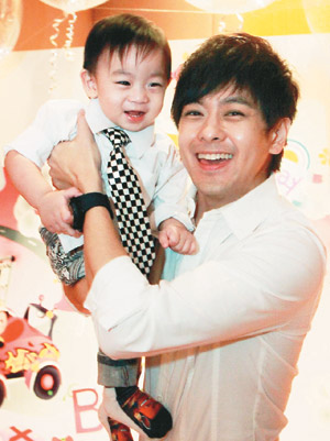 中新網(wǎng)9月17日電 據(jù)臺(tái)灣《聯(lián)合報(bào)》報(bào)道,臺(tái)灣藝人林志穎寶貝兒子Kimi16日慶周歲,林志穎為他高調(diào)慶生,不但親自布置場(chǎng)地當(dāng)起主持人,并請(qǐng)來30多位包括名模王麗雅夫妻檔、鐘漢良等親朋好友見證兒子“抓周”儀式!靶⌒≈尽币埠軤(zhēng)氣,第一次抓了小型筆記本電腦后,馬上又握住方向盤與麥克風(fēng),儼然是林志穎接班人。