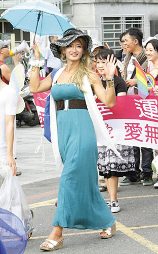 男“同志”小莫(化名)打扮成美麗的儀隊隊員,走在隊伍前端,背后還大方寫著:“I'm Gay,and you?”。他說,因為軍隊、儀隊是象征,而“同志”的權(quán)益長期受到漠視,也需要努力捍衛(wèi)。高頭大馬的喬許(Josh)則男扮女裝成歌手凱莉•米洛。他表示,是因為凱莉•米洛很支持“同志”運動。