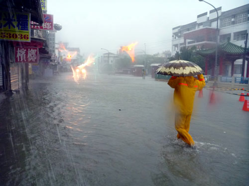 臺灣“氣象局”指出,“凡那比”中心點離開臺灣本島后,高雄縣市和屏東地區(qū)降雨以每小時超過100毫米速度增加,“氣象局”19日晚7時將高雄山區(qū)與屏東山區(qū)總降雨量再上修至1200毫米及1400毫米。