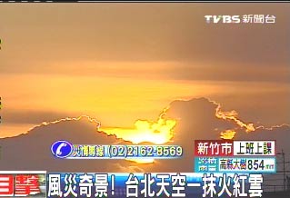 中新網(wǎng)9月20日電 早起的民眾是否注意到臺北今天的日出特別迷人嗎?據(jù)臺灣TVBS報(bào)道,臺風(fēng)“凡亞比”逐漸遠(yuǎn)離臺灣,臺北一早晴空萬里,當(dāng)太陽剛升起的時(shí)候,天空出現(xiàn)一大片的火紅云,早起出門運(yùn)動(dòng)的民眾,或是出門上課的學(xué)生,看到橘紅色的火紅云,都相當(dāng)震撼,隨著天色逐漸變亮,火紅云也慢慢消失。