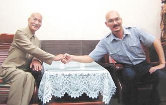 中新網(wǎng)9月21日電 據(jù)臺(tái)灣《聯(lián)合報(bào)》報(bào)道,桃園市民代表會(huì)職員李彥霆留著胡須,理個(gè)大光頭,朋友形容他很像年輕時(shí)的蔣介石,連住花蓮、常扮演蔣介石的李登科都去找他合照。