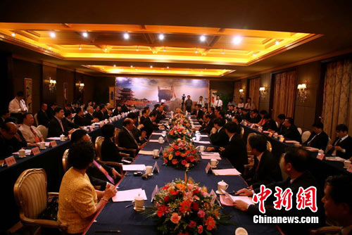 中新網(wǎng)贛州9月23日電 (劉占昆 何柳斌) 9月23日下午,江西省省長(zhǎng)吳新雄與國(guó)臺(tái)辦副主任鄭立中在江西贛州出席“2010贛臺(tái)(贛州)經(jīng)貿(mào)研討會(huì)”活動(dòng),會(huì)見了中國(guó)國(guó)民黨副主席蔣孝嚴(yán)、新黨主席郁慕明等到會(huì)臺(tái)灣嘉賓。