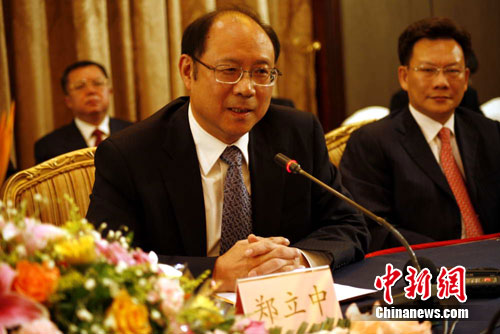 鄭立中在演講中首先回顧了近3年來兩岸關(guān)系發(fā)展的歷程。鄭立中指出,2008年,在兩岸同胞的共同努力下,兩岸關(guān)系出現(xiàn)了歷史性轉(zhuǎn)折,步入了以“和平發(fā)展”為主題的歷史新階段。秉承著“建立互信、擱置爭議、求同存異、共創(chuàng)雙贏”的精神,兩岸雙方開始建立并不斷增進(jìn)了政治互信,恢復(fù)了“兩會(huì)”制度化、事務(wù)性的協(xié)商,實(shí)現(xiàn)了兩岸全面、直接、雙向“三通”,兩岸大交流、大合作、大發(fā)展的局面初步形成并蓬勃發(fā)展。