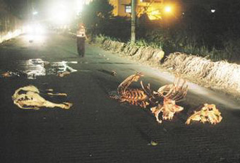 中新網(wǎng)9月27日電 據(jù)臺灣《聯(lián)合報(bào)》報(bào)道,臺灣云林縣北港鎮(zhèn)防汛道路25日晚驚見牛骨、牛頭、牛尸遍地,附近居民被腥味熏到難以入眠,路過的駕駛員被尸體嚇到,以為是棄嬰,險(xiǎn)些釀成車禍。