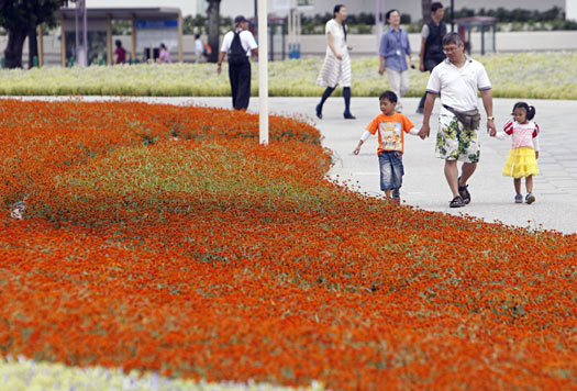 中新網(wǎng)10月19日電 據(jù)臺灣《中華日報》報道,臺北花博會第二階段測試昨天因逢禮拜一,三個園區(qū)共有近兩萬人次參觀,夢想館與夢想劇場最少需排隊三十分鐘才能進(jìn)入,其余展館則動線都順暢。