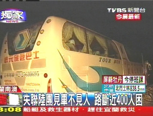 報(bào)道說,游覽車玻璃上還貼著歡迎貴賓的簡體字紙條,但車上的司機(jī)和旅客卻不知去向。工程人員表示:“只有車,受困在坍方的地方!庇浾邌枺骸叭擞性谏厦鎲幔俊惫こ倘藛T回答:“我不曉得,我沒有上去耶。”