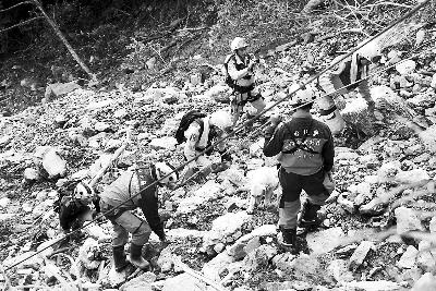 他們突破幾處坍方路段后,向前推進(jìn)了一個(gè)小時(shí)路程,才碰到受困人員。這些大陸游客和民眾已受困半天,多半饑寒交迫,官兵隨即卸下口糧給他們充饑,之后繼續(xù)向前尋找。