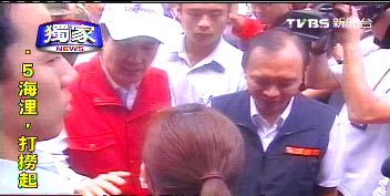 臺灣“鲇魚”帶來豪雨重創(chuàng)宜蘭,當(dāng)?shù)鼐用駷?zāi)后忙著清理家園,馬英九及臺“行政院長”吳敦義23日前去勘災(zāi),因車隊動用警力以及交通管制,引發(fā)一些民眾不滿。