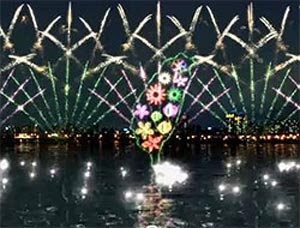11萬(wàn)發(fā)煙火中尤以大稻埕煙火將施放的“臺(tái)灣百花圖”難度最高,施放過(guò)程中,臺(tái)灣圖樣于水中慢慢站立的意象表現(xiàn),堪稱是世界獨(dú)一無(wú)二的臺(tái)灣煙火景觀;此外,也將有2250顆連續(xù)施放、在空中持續(xù)燃燒達(dá)40秒的“紅燈籠煙火”,及代表世界五大洲“心連心”的特殊高空煙火,“彩花瀑布”等精彩絕倫的煙火景象。