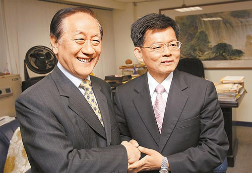 中新網(wǎng)11月5日電 據(jù)臺(tái)灣媒體報(bào)道,正當(dāng)國民黨為大高雄“棄!毙(yīng)忙于消毒的時(shí)刻,無黨籍大高雄市長參選人楊秋興4日突訪新黨主席郁慕明。半小時(shí)閉門會(huì)談后,郁慕明說,新黨支持國民黨“五都”參選人,同時(shí)說新黨是柔性政黨,支持者有選擇的空間,他并祝福楊能在大高雄市長選舉中“脫穎而出”。