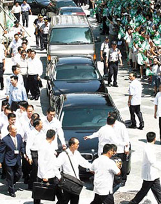“卸任正副領(lǐng)導(dǎo)人禮遇條例”原本規(guī)定,卸任者每月致送禮遇金25萬(wàn)元,至于供聘用處理事務(wù)人員、司機(jī),及辦公室所需費(fèi)用,則依第一年800萬(wàn),以后每年金額逐年遞減100萬(wàn),最低每年500萬(wàn)直到禮遇期限屆滿為止。當(dāng)局“國(guó)安局”則另提供8到12名隨扈,只維護(hù)其在島內(nèi)的安全。