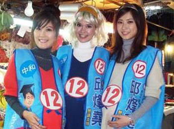 中新網(wǎng)11月25日電 據(jù)“中央社”報道,未婚的“政大(臺灣政治大學)4姬”中的三人24日扮孕婦到中和為人助選拜票。三人說,“扮孕婦象征‘好運到’”。