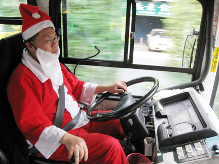 中新網(wǎng)12月20日電 隨著圣誕節(jié)到來,臺(tái)北市某客運(yùn)公司約五百名司機(jī)最近又悄悄變裝,打扮成圣誕老公公的模樣,讓平淡的公交車之旅變得更多采多姿,也平添不少歡欣的過節(jié)氣氛。