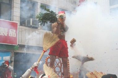 其中的重頭戲炮炸寒單爺,今年一共安排了十四場(chǎng)次的定點(diǎn)表演。第一次看表演的民眾覺得是既恐布又過癮。
