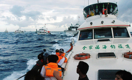 馬英九當(dāng)局的強(qiáng)硬態(tài)度,讓保釣人士格外興奮。黃錫麟等人再次出海保釣,也沒有遭遇任何阻攔。臺灣保釣行動聯(lián)盟12名成員及30名隨行記者,登上“全家!碧柡a灤巴烎~島宣示“主權(quán)”。一路上還有臺灣“海巡署”的軍艦保護(hù)。
