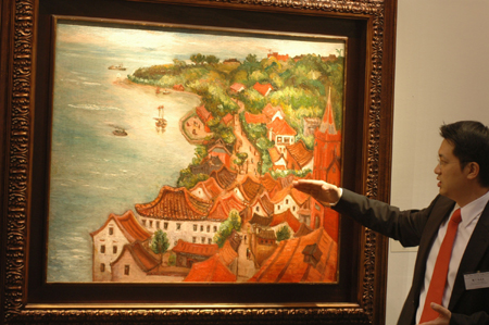 中新網(wǎng)11月26日電 香港嘉士得秋季拍賣二十五日起正式登場(chǎng),首日舉行的“中國(guó)二十世紀(jì)藝術(shù)”拍賣達(dá)成一百一十八項(xiàng)交易,其中擁有“中國(guó)梵高”美譽(yù)的臺(tái)灣畫家陳澄波作品《淡水夕照》,成交價(jià)逾兩億一千萬(wàn)元(新臺(tái)幣,下同)。