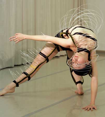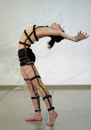 云門舞集2“2008春斗鳥之歌”三月二十六日起將在新舞臺一連演出五場,這是云門火災后第一檔公演。圖為二月二十五日云門舞者表演編舞家黃翊新創(chuàng)作的“身·音”。(“中央社”圖;張皓安攝)