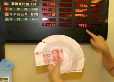 人民幣即將在三十日在臺灣各大行庫開始接受兌換,桃園國際機場29日的銀行柜臺也早已經(jīng)將人民幣的牌告匯率訂出,賣出為新臺幣四點五五三元兌換一元人民幣。 “中央社”圖