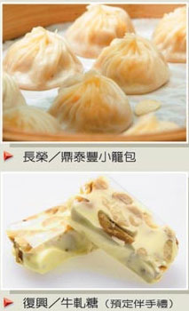 長榮、立榮則依路線、設(shè)計,以目的地餐飲為特色的餐點,由大陸啟程的航班,商務(wù)艙旅客可在抵臺前,吃到紅燒牛肉湯面、臺式三杯雞、鼎泰豐小籠湯包;經(jīng)濟(jì)艙則有彰化肉圓、麻油雞與鹵肉飯。