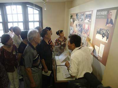 大陸游客參觀一樓回廊、臺(tái)灣建筑之美展覽、歷任臺(tái)灣地區(qū)領(lǐng)導(dǎo)人文獻(xiàn)檔案,參觀時(shí)間約50分鐘。大陸游客也蓋下紀(jì)念章,并在大樓前拍照留念。