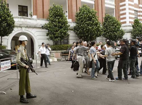 報(bào)道說(shuō),馬英九辦公室從六月九日再度開(kāi)放參觀以來(lái),以往參觀的都是零散的大陸觀光客,上午首度有來(lái)自廣州的觀光團(tuán)前來(lái)參觀。