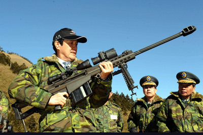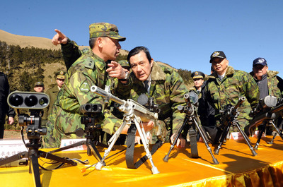 馬英九14日前往合歡山武嶺視察臺灣陸軍特訓(xùn)中心武嶺寒訓(xùn)基地,慰問受訓(xùn)士兵并參觀特訓(xùn)中心各式雪地狙擊所使用的特殊裝備。