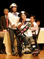 中新網(wǎng)12月19日電 高雄市第七屆“立委”參選人今天(19日)進(jìn)行號次抽簽,參選人莫不花招百出,其中民進(jìn)黨“立委”管碧玲坐著輪椅負(fù)傷前往抽簽且一身海洋船長裝扮。她并自我解嘲說“獨(dú)一無二、無以輪比”,頗有創(chuàng)意。