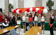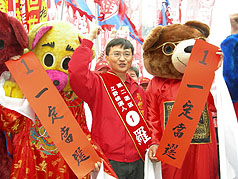抽簽會(huì)場(chǎng)外藍(lán)綠陣營(yíng)積極動(dòng)員造勢(shì),現(xiàn)場(chǎng)“凍蒜!(注:當(dāng)選)”聲此起彼落,場(chǎng)面熱烈,在警方以人墻區(qū)隔藍(lán)綠陣營(yíng)下,過(guò)程平和。