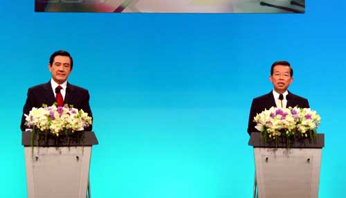 電視政見發(fā)表會:馬英九秀廣告牌 謝長廷備剪報