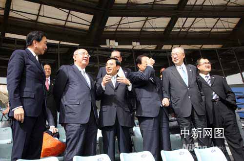 吳伯雄一行參觀北京奧運場館五棵松棒球場(圖)