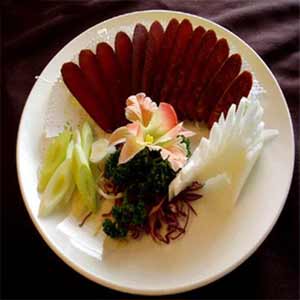 鮪魚(yú)就是“金槍魚(yú)”,黑鮪魚(yú)是東港最有名的漁產(chǎn),產(chǎn)量占臺(tái)灣的八成以上,黑鮪魚(yú)全身都是寶,用黑鮪魚(yú)肉做成的生魚(yú)片是上上之品,細(xì)膩滑嫩,富含油脂,入口即化,一直是日本人的最?lèi)?ài)。因此。黑鮪魚(yú)身長(zhǎng)1.5至2.5米.體重60至300公斤,最大可達(dá)500公斤。