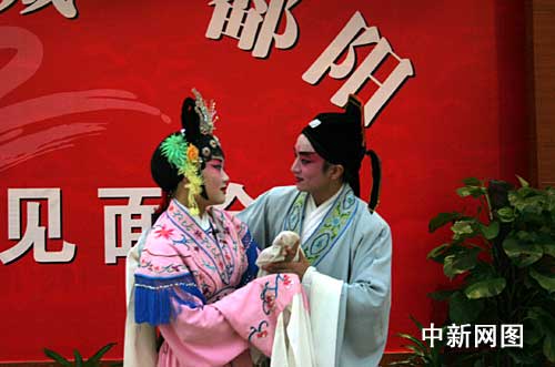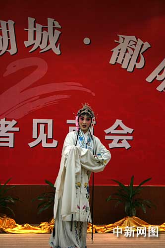 中新網(wǎng)10月22日電 “第五屆網(wǎng)絡(luò)媒體江西行”采訪團(tuán)22日抵達(dá)鄱陽縣?h委書記劉鋒等會見了記者并回答提問。見面會后,當(dāng)?shù)匮輪T獻(xiàn)上了地方戲劇。