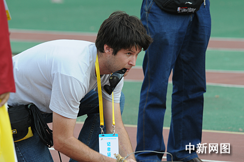 中新網(wǎng)泉州10月28日電 (劉通)今天上午,第六屆全國農(nóng)民運動會田徑項目在福建泉州海峽體育中心開賽。圖為專注采訪農(nóng)運60米插秧比賽的兩名外國記者。