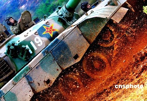 代號(hào)為“前鋒—2008”的為中國(guó)人民解放軍濟(jì)南軍區(qū)某裝甲旅進(jìn)攻戰(zhàn)斗檢驗(yàn)性實(shí)兵實(shí)彈演習(xí),10月28日11時(shí)在確山合同戰(zhàn)術(shù)訓(xùn)練基地進(jìn)入機(jī)動(dòng)化、立體化、諸兵種協(xié)同、山地進(jìn)攻戰(zhàn)斗階段。戰(zhàn)斗在復(fù)雜信息化火力戰(zhàn)、諸兵種聯(lián)合作戰(zhàn)條件下,突出現(xiàn)代戰(zhàn)爭(zhēng)適應(yīng)、聯(lián)合作戰(zhàn)協(xié)同、部隊(duì)作戰(zhàn)能力體現(xiàn)等特點(diǎn),按照信息火力打擊(火力突擊、電磁攻擊、綜合破障)、綜合攻擊(多路強(qiáng)攻、超越攻擊、縱深遮斷)、奪點(diǎn)控域(立體攻占、聚殲控域、鞏固陣地)等內(nèi)容實(shí)施。中新社發(fā) 宋吉河 攝