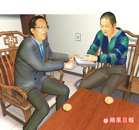 上周扁回臺南官田老家時,將五張消災解厄牒文交給鄰居陳清江,托他還愿并求菩薩化解其和邱毅前世恩怨。