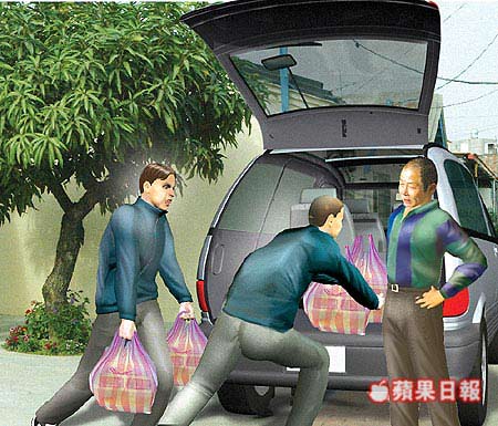 扁囑咐隨扈人員將五大包,面額共2500萬元的紙錢,送到休旅車上。