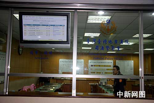 12月29日下午2時(shí),臺(tái)北地方法院召開前臺(tái)灣地區(qū)領(lǐng)導(dǎo)人陳水扁羈押庭,經(jīng)過長達(dá)12多小時(shí)的庭訊、評(píng)議后,合議庭審判長蔡守訓(xùn)30日2時(shí)25分裁定將陳水扁羈押,但不禁見。陳水扁被收押的公告就是在這里發(fā)布。 (中新社記者 陳立宇/攝)