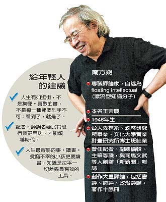 由網(wǎng)友合力寫成的維基百科上,是這么說南方朔的:“思想偏左的文化評論家”及“最用功的民間學(xué)者”。