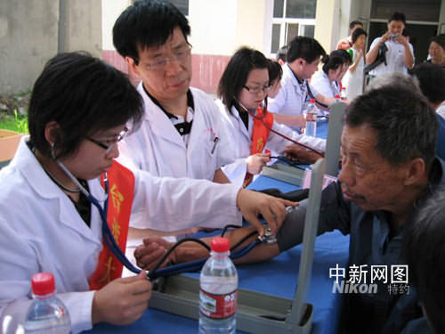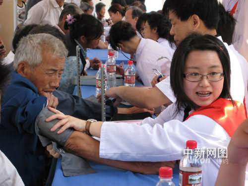 今日在六合區(qū)雄州市街道敬老院,長條課桌鋪開一溜,二十多個(gè)臺灣大學(xué)生著清一色白大褂,神情嚴(yán)肅認(rèn)真、儼然“大夫”模樣。在敬老院七十五個(gè)老人面前,他們詢病問傷,量血壓、針灸、開藥方,忙得不亦樂乎。